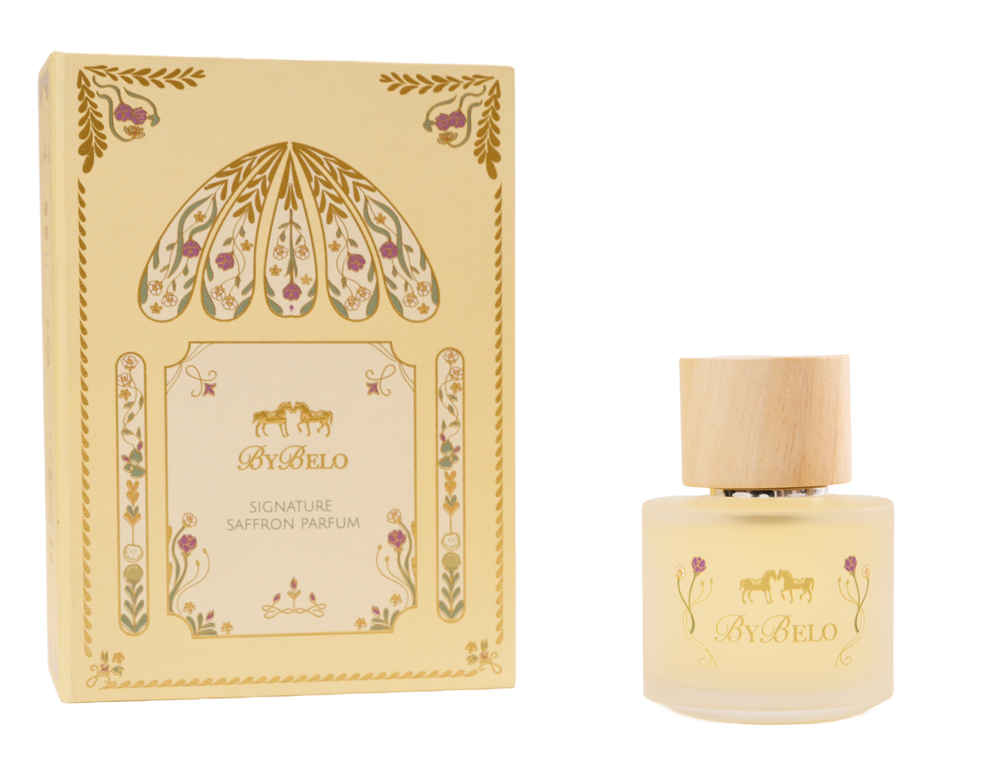 ByBelo’s Signature Saffron scent is a combination of raw, natural ingredients selected to complement each other and rest uniquely on anyone’s skin. Featuring ByBelo’s hand-picked Moroccan saffron, the perfume also contains notes of vanilla, orange blossom, bergamot and has a one-of-a-kind mystifying floral and earthy base, resulting in an elegant, rich, and intriguing show-stopping fragrance. You have simply never smelled anything like it.